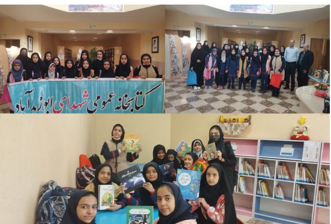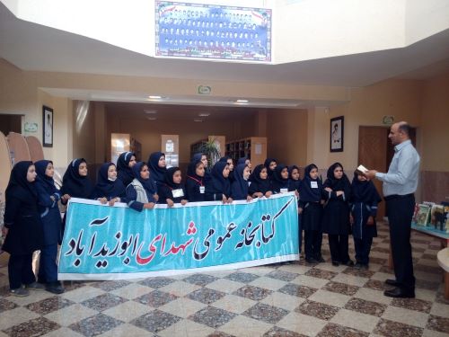 به همت سرکار خانم رحمانی از آموزگاران مدرسه دخترانه شهدای ابوزیدآباد، دانش آموزان پایه هفتم از بخش های مختلف کتابخانه عمومی شهدای ابوزیدآباد بازدید نمودند. در این بازدید مسئول کتابخانه آقای سید مهدی جوادی توضیحاتی در اهمیت کتاب و کتابخوانی و همچنین کتابخانه و شرایط استفاده از آن ارائه نمود.